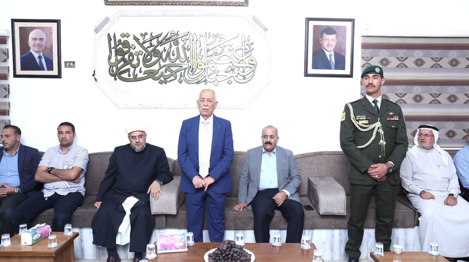 وفي محافظة إربد نقل العيسوي، خلال زيارته بيت عزاء المرحوم صهيب عبدالرحمن العكور، تعازي ومواساة جلالة الملك وسمو ولي العهد، إلى ذوي الفقيد وعموم عشيرة العكور، سائلا المولى عز وجل أن يتغمده بواسع رجمته.