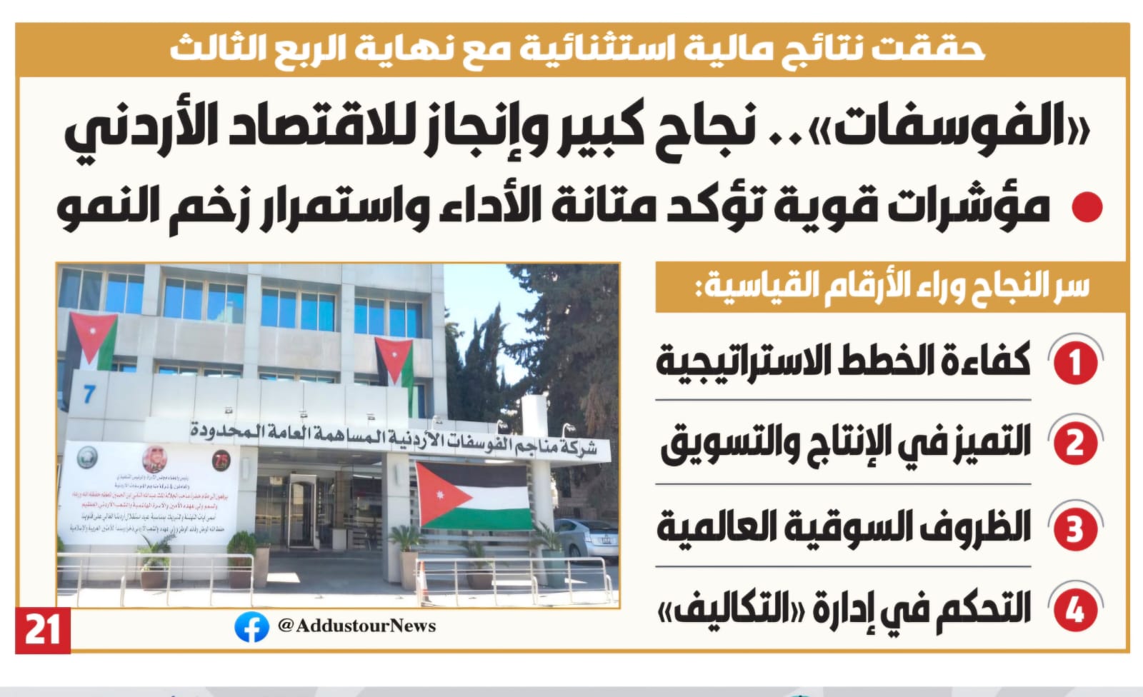 تُعد هذه النتائج المالية القوية لشركة مناجم الفوسفات الأردنية ليس فقط نجاحاً للشركة نفسها، بل إنجازاً للاقتصاد الأردني بشكل عام. فهي تساهم بشكل مباشر في زيادة الإيرادات الحكومية من خلال الضرائب، وتعزز من ميزان المدفوعات عبر عوائد التصدير، وتؤكد على مكانة الأردن كشريك موثوق في سوق الفوسفات العالمي. مع استمرار هذا الأداء، تُطوق الشركة العام بمزيد من التفاؤل، متجهة نحو تسجيل عام استثنائي آخر في سجلاتها المالية، مما يعزز ثقة المستثمرين ويضعها في الصدارة كرافد أساسي للتنمية الاقتصادية في المملكة.