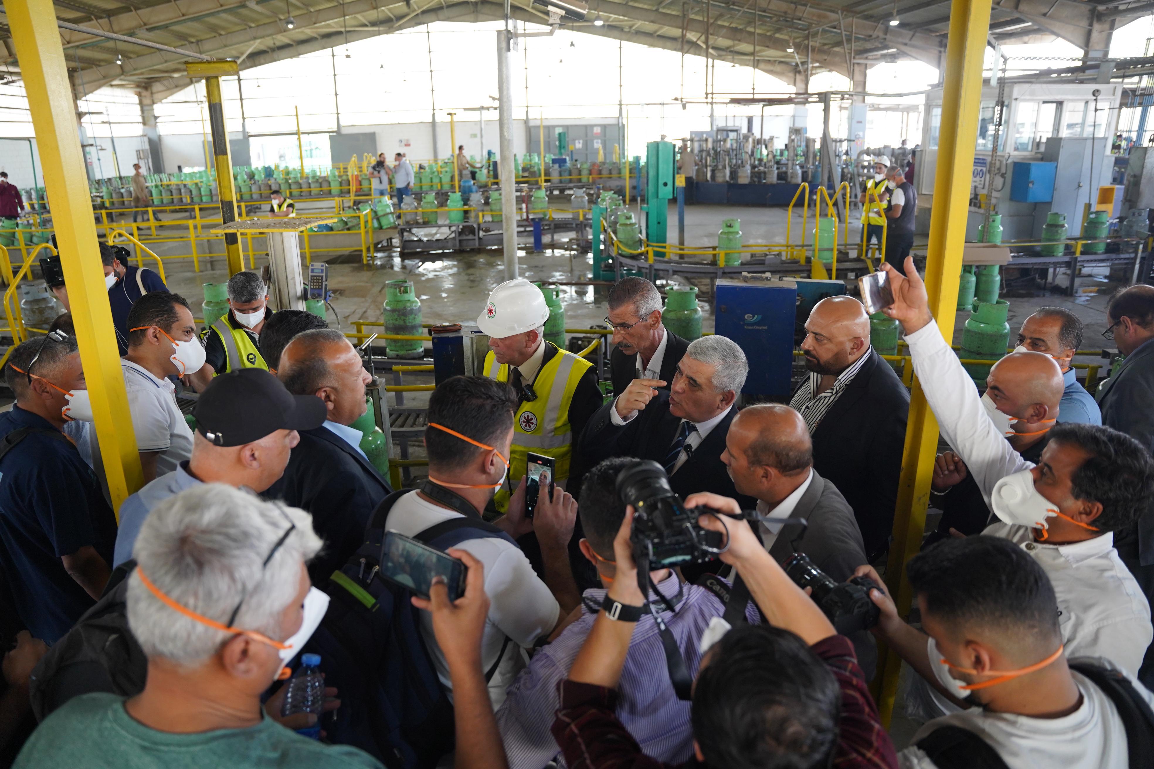الصحفيون والاعلاميون يطّلعون في محطة تعبئة غاز عمان – أبو علندا على مراحل التعبئة الدقيقة والفحص الفني والتنظيف والمعايرة للأسطوانات