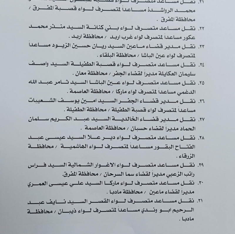 أجرى وزير الداخلية مازن الفراية، اليوم الاربعاء، تشكيلات إدارية واسعة شملت متصرفين ومساعدي متصرفين ومدراء أقضية.