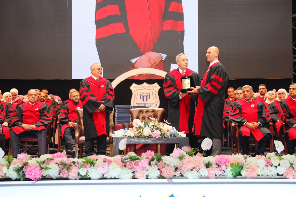قام راعي الحفل والى جانبه رئيس الجامعة بتكريم الدكتور مراد المعايطة،