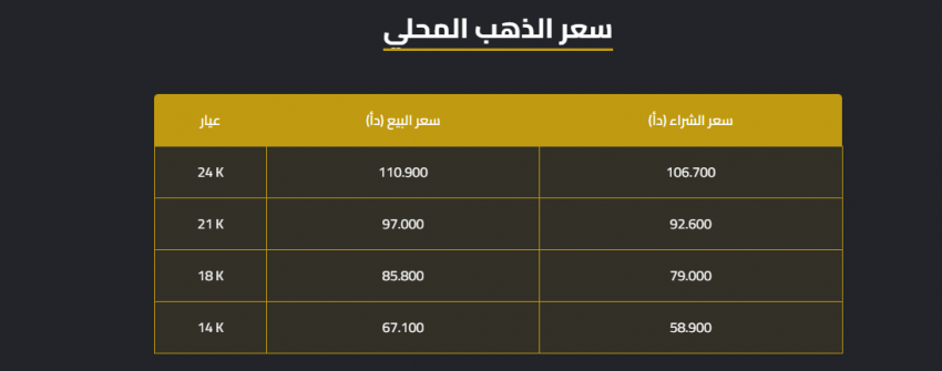 وبلغ سعر بيع غرام الذهب عيار 21 الأكثر رغبة في السوق المحلية، 97 دينارا لغايات البيع من محلات الصاغة، مقابل 92.60 دينارا لجهة الشراء.