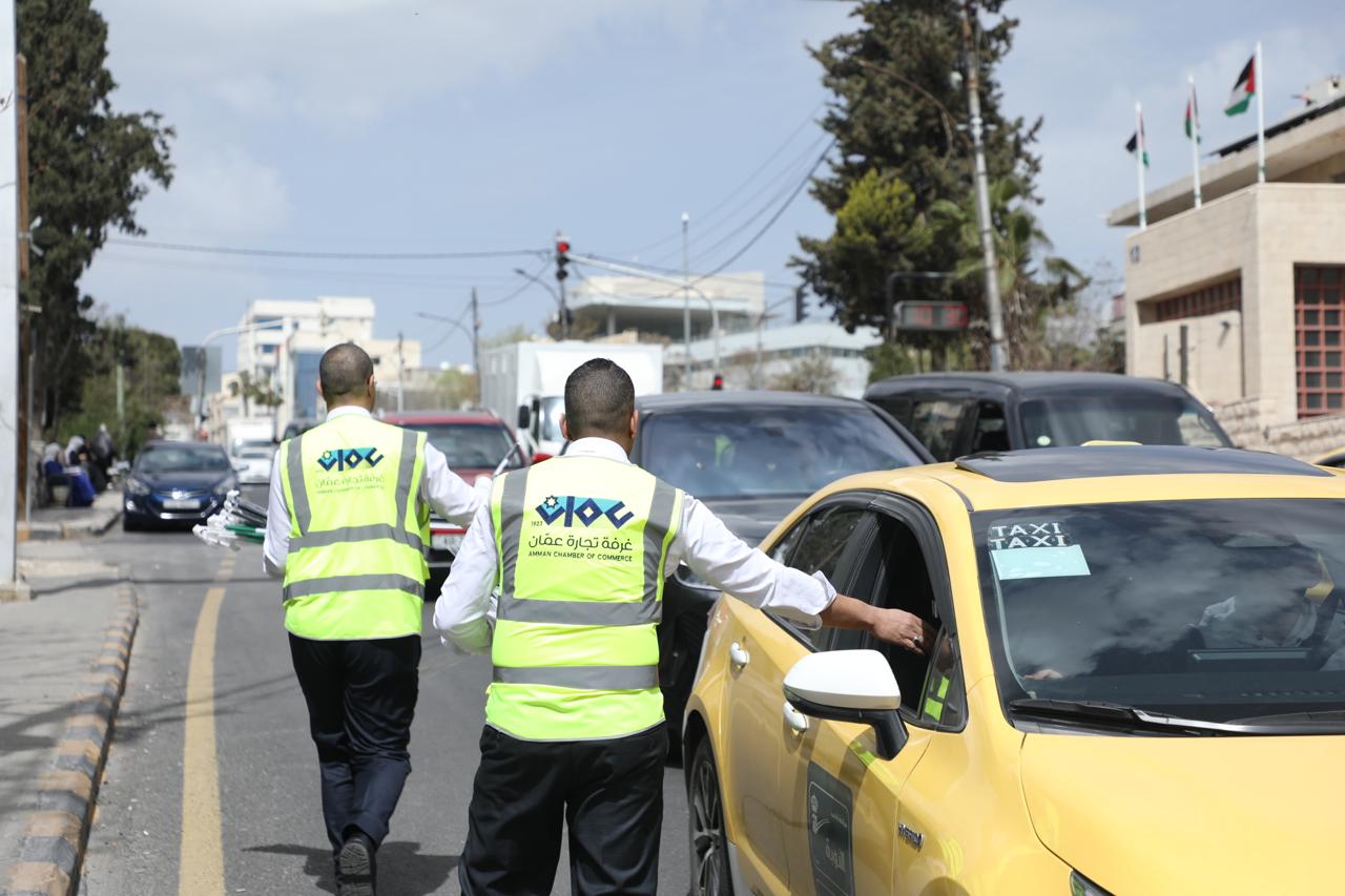 والسائقين في منطقة الشميساني، ضمن حملة "علمنا عال"، التي تنفذها وزارة