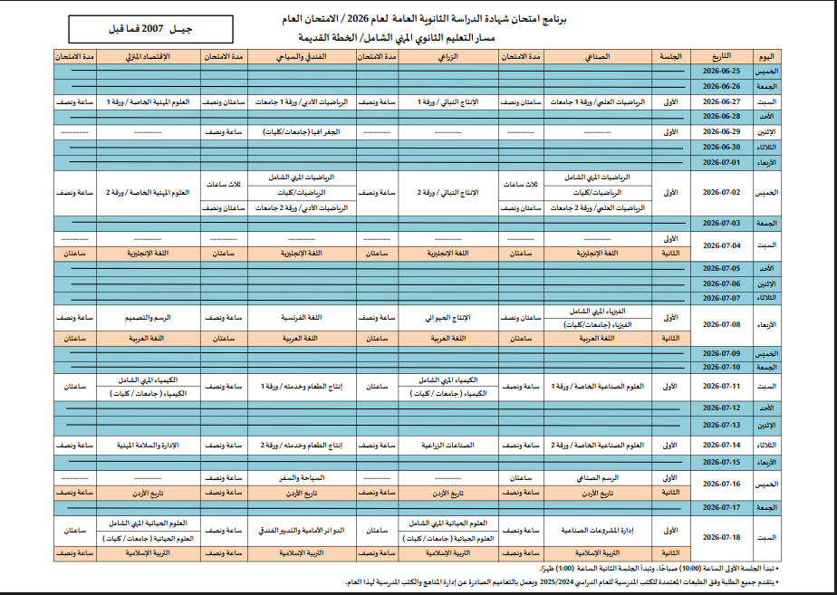 وسيبدأ أول أيام الامتحانات الخميس 25 حزيران وتختتم السبت 18 تموز.