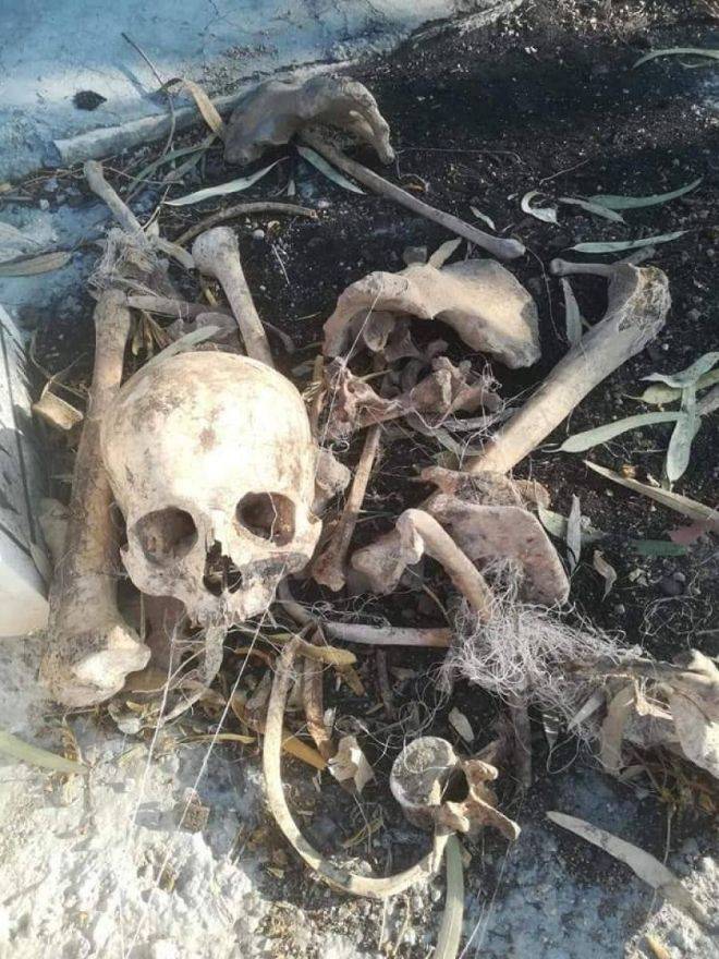 اعمال تخريبية في مقبرة "تل اربد" تتسبب باخراج رفات وعظام موتى- صور