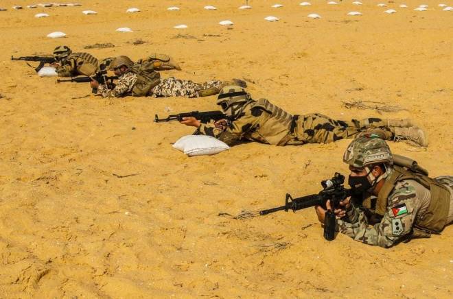 تواصل القوات العربية المشاركة في التدريب المشترك "سيف العرب" تنفيذ الفعاليات التدريبية البرية والبحرية والجوية، والذي يستمر حتى السادس والعشرين من الشهر الجاري في قاعدة محمد نجيب العسكرية وميادين التدريب المخصصة في المنطقة العسكرية الشمالية المصرية.