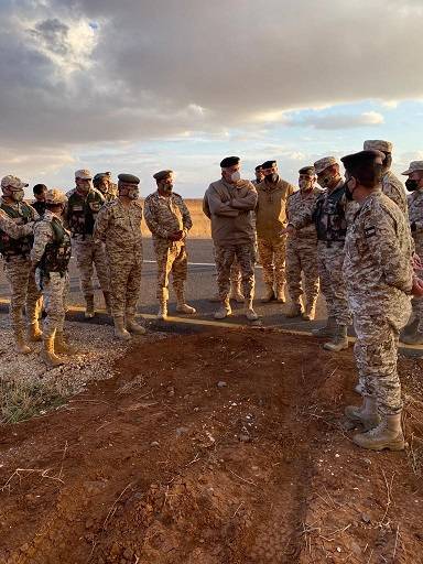 تفقد رئيس هيئة الأركان المشتركة اللواء الركن يوسف أحمد الحنيطي، اليوم الجمعة، واجهة كتيبة الحسين الآلية /٢ (أم الشهداء) إحدى وحدات المنطقة العسكرية الشرقية، وكان في استقباله قائد المنطقة.