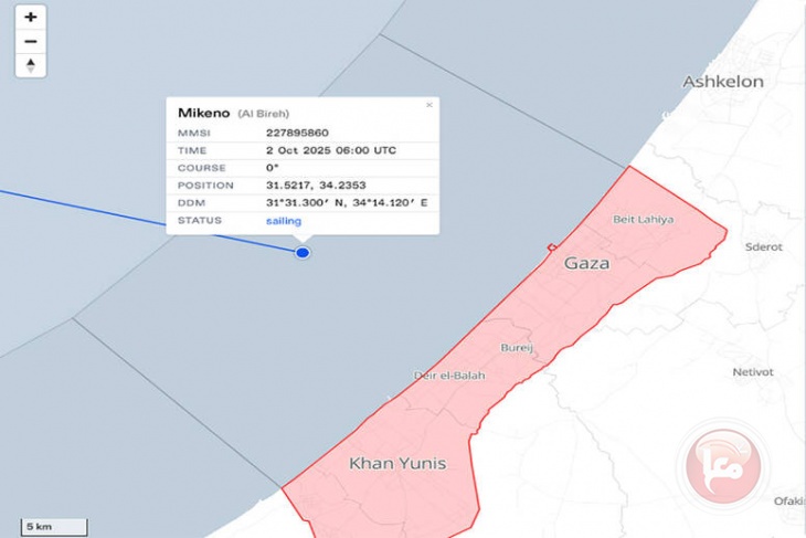 ودخلت "ميكينو" مياه غزة الإقليمية وهي على بعد 9 أميال بحرية من شواطئ القطاع