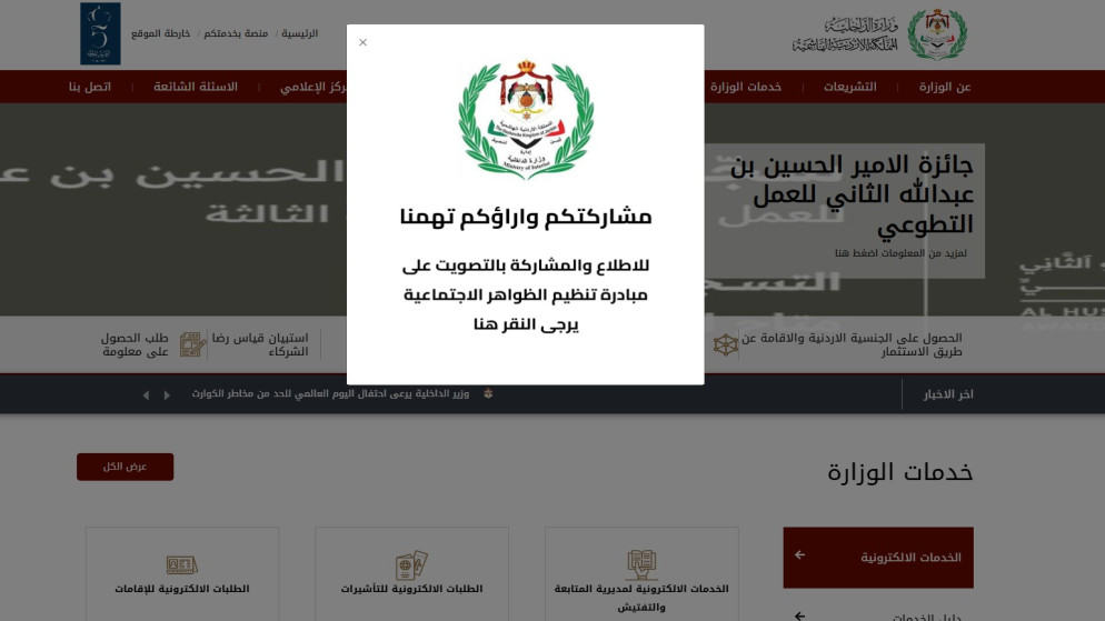 بدأت وزارة الداخلية استفتاءً عامًا لاستطلاع آراء المواطنين عبر موقعها الإلكتروني حول مبادرة تنظيم الظواهر الاجتماعية، والتي تهدف إلى الحد من المبالغة في المظاهر والتكاليف المرتبطة بالمناسبات الاجتماعية، مثل حفلات الزفاف ومجالس العزاء وغيرها، بما يعزز قيم الاعتدال والتكافل في المجتمع الأردني.