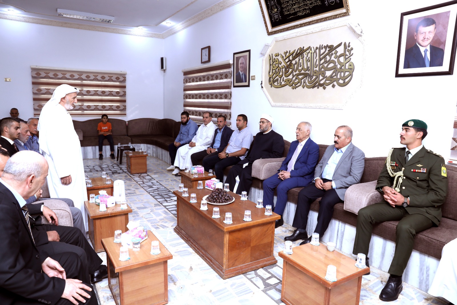 وفي محافظة إربد نقل العيسوي، خلال زيارته بيت عزاء المرحوم صهيب عبدالرحمن العكور، تعازي ومواساة جلالة الملك وسمو ولي العهد، إلى ذوي الفقيد وعموم عشيرة العكور، سائلا المولى عز وجل أن يتغمده بواسع رجمته.