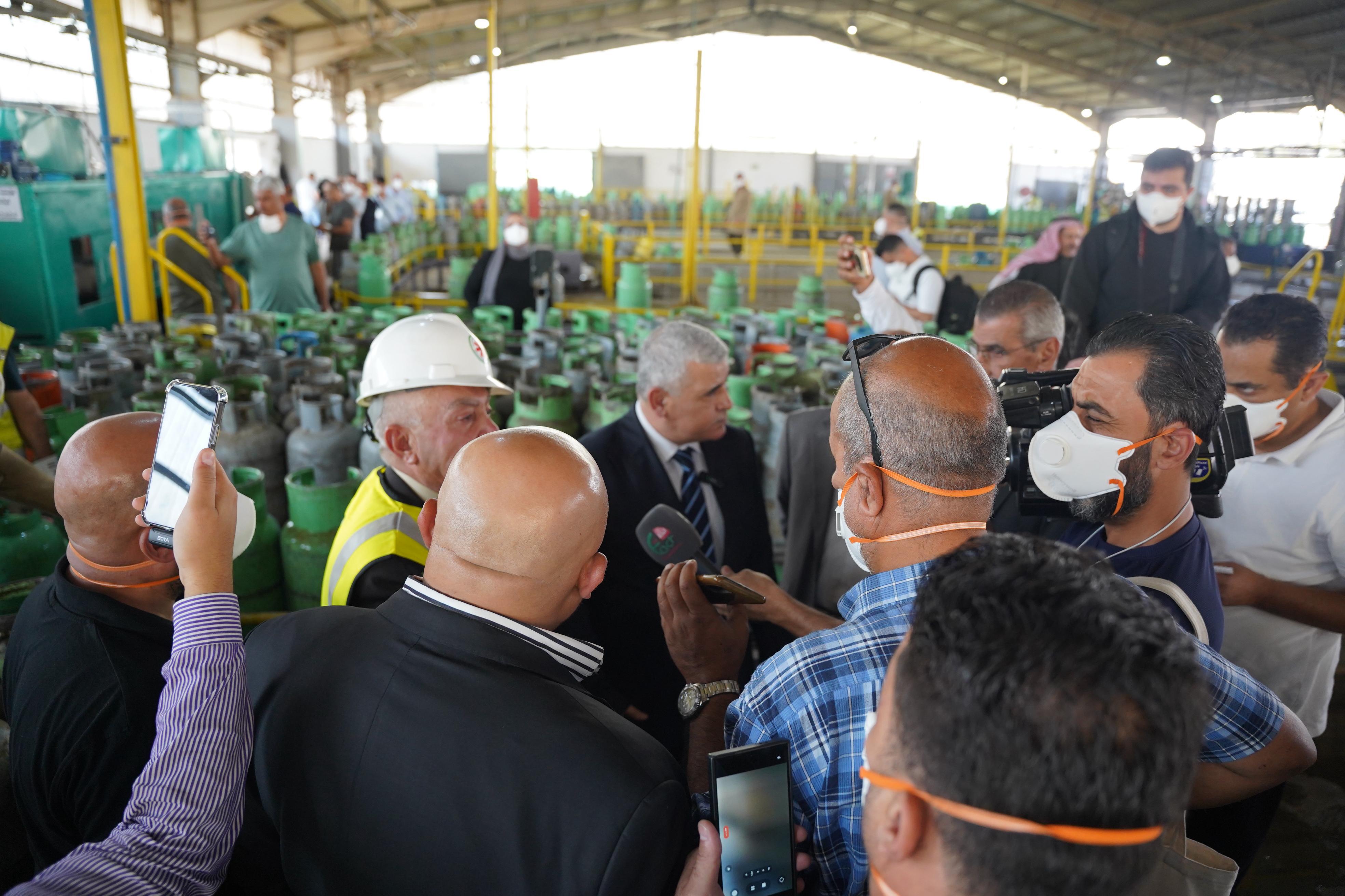 الصحفيون والاعلاميون يطّلعون في محطة تعبئة غاز عمان – أبو علندا على مراحل التعبئة الدقيقة والفحص الفني والتنظيف والمعايرة للأسطوانات