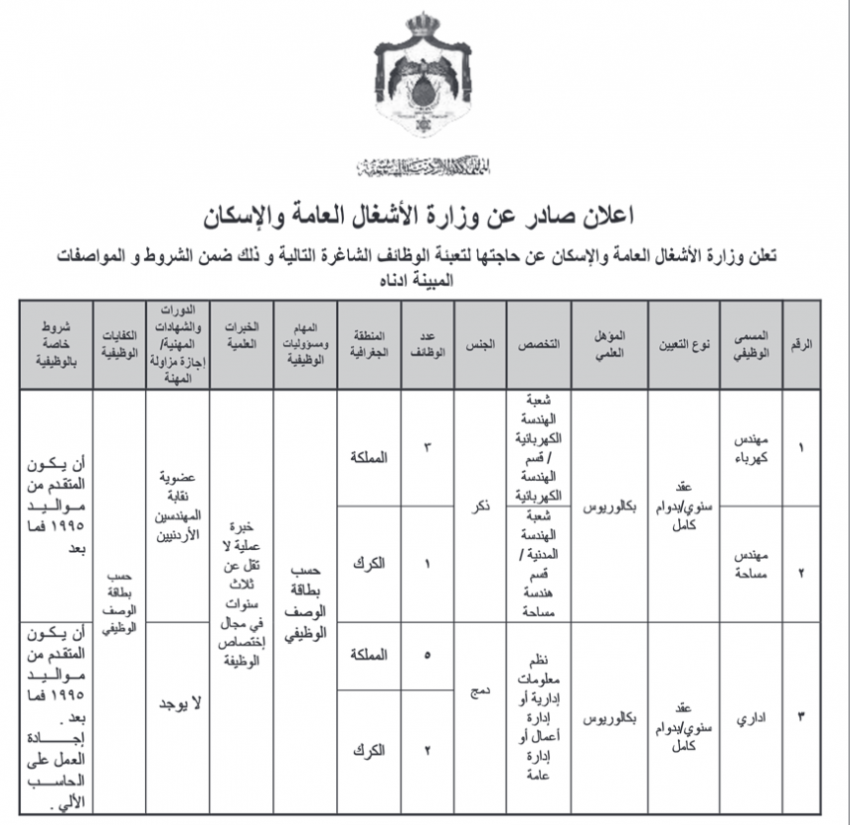 أعلنت وزارات ودوائر حكومية اليوم الثلاثاء حاجتها لتعيين موظفيين لوجود بعض الشواغر.