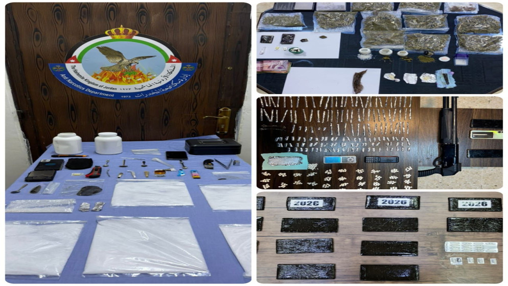 وقال الناطق باسم مديرية الأمن العام، الأحد، إنّ فرق مكافحة المخدرات، بالتنسيق مع مديريات الشرطة المختصّة وقوات الدرك، نفّذت 4 حملات أمنيّة على تجّار ومروّجي المخدرات في عدّة محافظات، منها معان، حيث أفضت إلى إلقاء القبض على 10 مطلوبين ومروّجين وتجار للمخدرات.