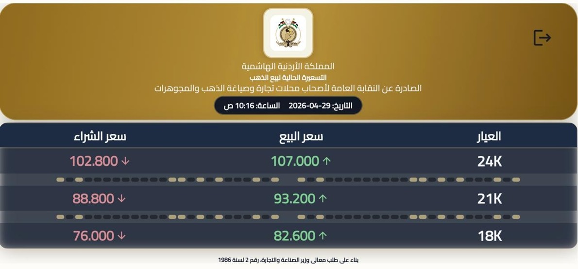 وبلغ سعر غرام الذهب عيار 21 الأكثر تداولا بين المواطنين 93.2 دينارا.