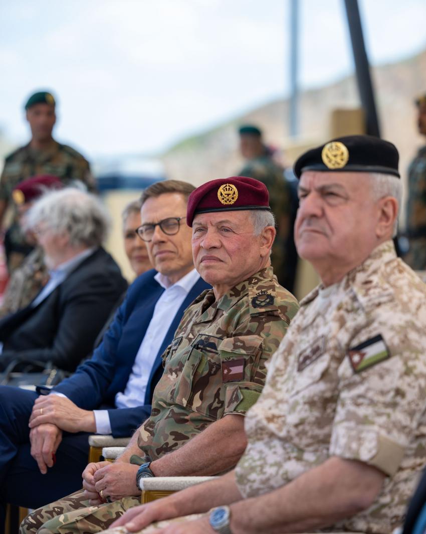 تابع جلالة الملك عبدﷲ الثاني، القائد الأعلى للقوات المسلحة، والرئيس الفنلندي الدكتور ألكسندر ستوب، اليوم الاثنين، تمرينا عسكريا تعبويا في مركز الملك عبدﷲ الثاني لتدريب العمليات الخاصة (KASOTC).